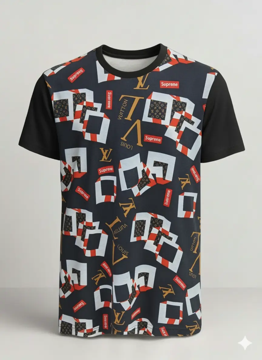 Iconic Collaboration: The print is dynamic and layered, showcasing an intricate pattern of luxury motifs and streetwear symbols, creating excellent visual depth and a high-impact aesthetic. This combination signifies one of the most talked-about and exclusive collaborations in designer history.